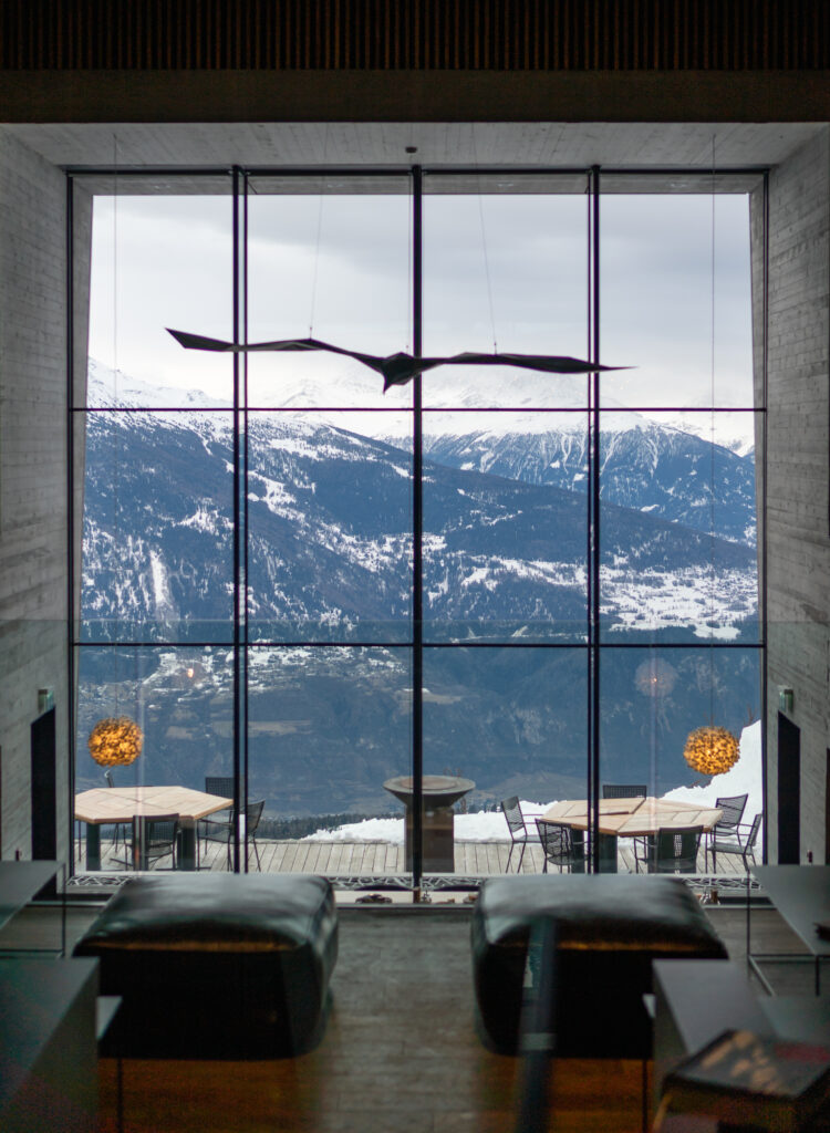 Today, Chetzeron stands as a beacon of innovation and respect for heritage. The original gondola’s passageway has been transformed into a grand glass-enclosed lounge, providing panoramic views of the surrounding peaks. Architectural elements like the concrete façade have been thoughtfully preserved, harmoniously blending with modern materials such as oak and stone.